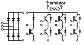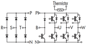 PIM是将3相变频器电路、二极管桥接电路、制动电路集成到1个模块上的产品,能够紧凑地设计主电路。富士公司的PIM有600V、1200V两种电压等级。