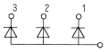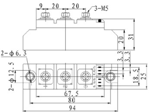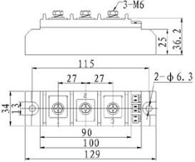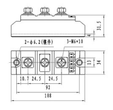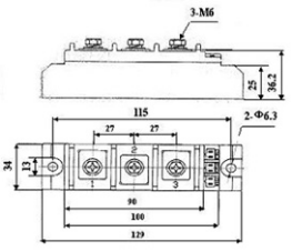 三可控硅模块是指一支模块封装中有三片可控硅管芯,模块底板非绝缘,底板是一个电极;三二极管模块是指一支模块封装中有三片二极管管芯,模块底板非绝缘,底板是一个电极。这种结构的模块多应用于焊机领域。