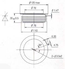 KP4800-120KT110hT | 4800A | 4400-5200V | 400 | 75 | 1.3 | 3000 | 80-300 | 1.2-3.0 | 50-300 | 1000 | 300 | 1.05 | 0.116 | 0.004 | 120KT110hT |
