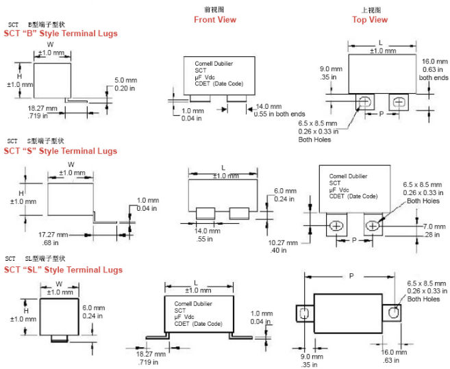SCT型无感电容 外形尺寸